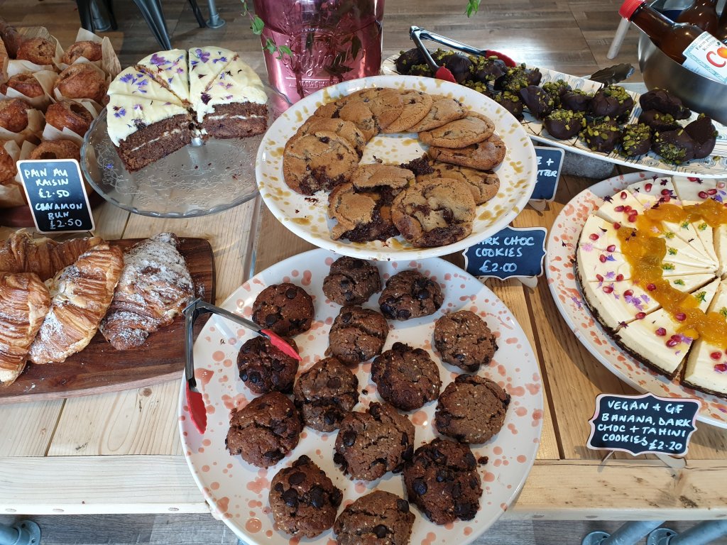 I am hesitant about recommending The Allotment Kitchen, the new café at Stepney Farm, only because it is already so busy on Saturday mornings that it is hard to join the queue for their biscuits, cakes and buns. But having spent an infinitely leisurely hour eating breakfast out of a cardboard box, I cannot think of anywhere nicer:-