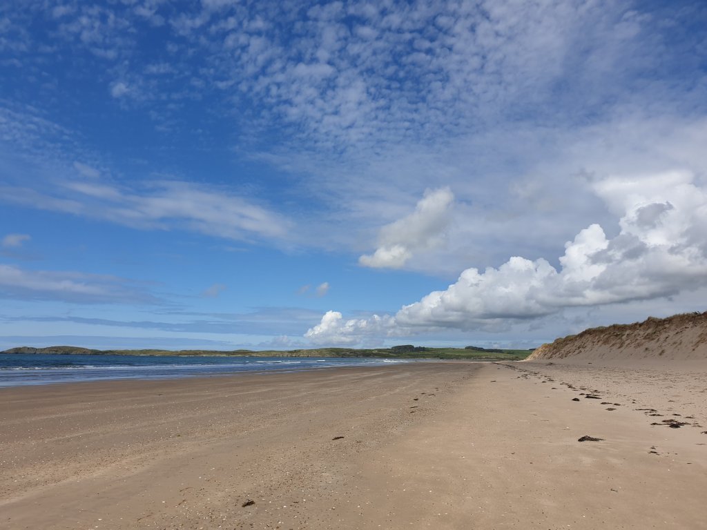 Having been turned away from the beach yesterday, we were there this morning as the gate opened at 8am, so were able to enjoy it relatively empty at the beginning of the day, including a swim in the cold Irish sea:-