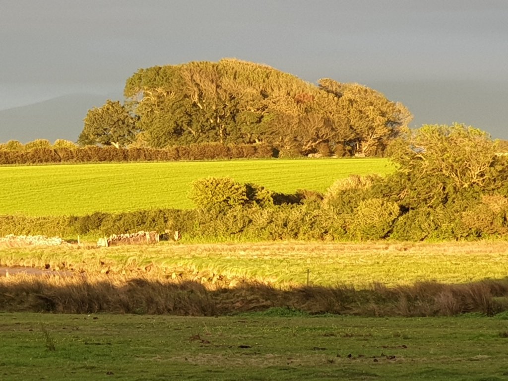 I stopped off at Castell Bryn-Gwyn, a wonderfully nondescript neolithic fort reached down a long muddy track from a lay-by just outside Brynsiencyn: nothing but cows and fields, in the middle of nowhere, thought to have been a religious sanctuary:-