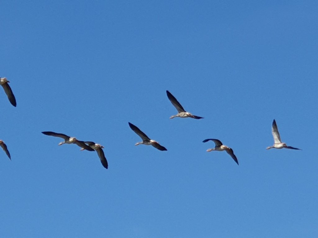 Each summer I waste a lot of time and energy photographing the local bird life, which is not really practical with a mobile phone which renders geese as a distant blur. But today by a fluke I was standing in a field and the geese wheeled overhead in beautiful formation:-