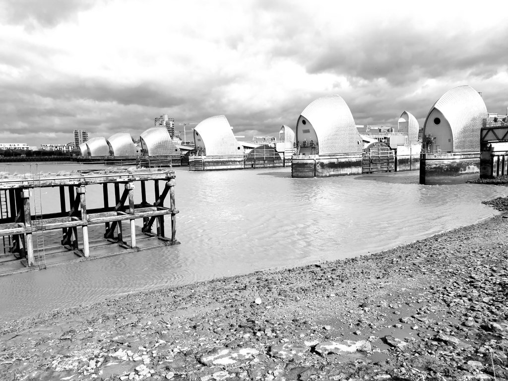 Along the track up the west side of Greenwich Peninsula, which is mostly either derelict or awaiting new development, past Richard Wilson’s Slice of Reality and down the east side of the Peninsula which is much more boring – endless blocks of big, nondescript character until one gets to more industrial wastelands, past the Thames Barrier:-