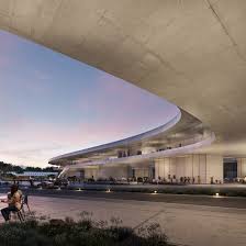 Very oddly, it is conceptually not totally dissimilar from the new LACMA in the way in which it deliberately eschews traditional architectural forms for curved walls and shapes and they are both one story up in order to create a plaza below:-
