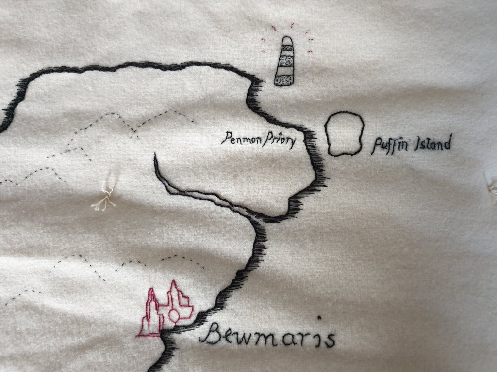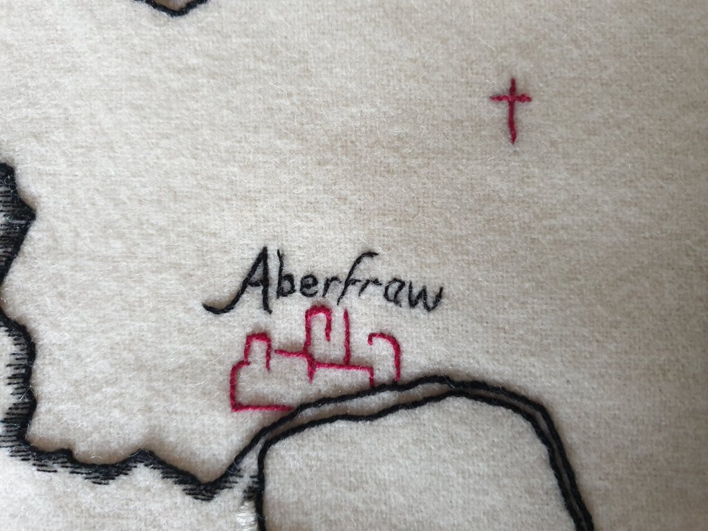 In our mourning for not being able to travel to Wales and missing the view of the mountains under snow, we have taken delivery of a bedspread which has our favourite places embroidered:-