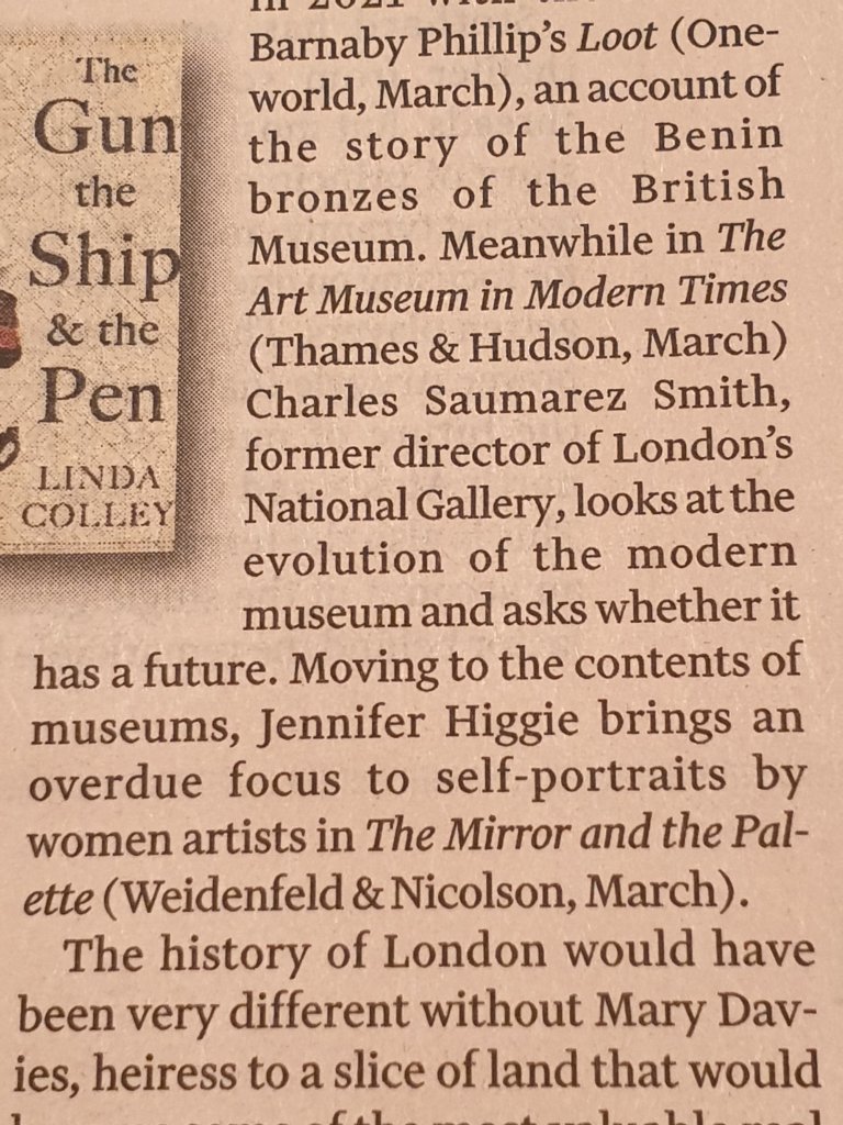 I have only just been tipped off that my museums book appeared in the FT’s description of which books to read in 2021. This has, of course, cheered me up no end, particularly when I see what company I am keeping: Peter Ricketts on the world of diplomacy; Linda Colley’s The Gun, The Ship and the Pen; Lucasta Miller on Keats. The book I’m particularly looking forward to is Rosemary Hill’s The Time’s Witness: History in the Age of Romanticism, published by Allen Lane in 2021. Much to look forward to !