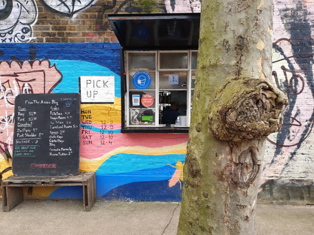 We went for a freezing cold expedition to the Olympic Park for a walk, but couldn’t find anywhere to park, so wandered round Hackney Wick which seemed to be a hive of lockdown activity with cafés and food shops and a nice hole-in-the-wall where we were able to buy freshly baked ciabatta for lunch:-