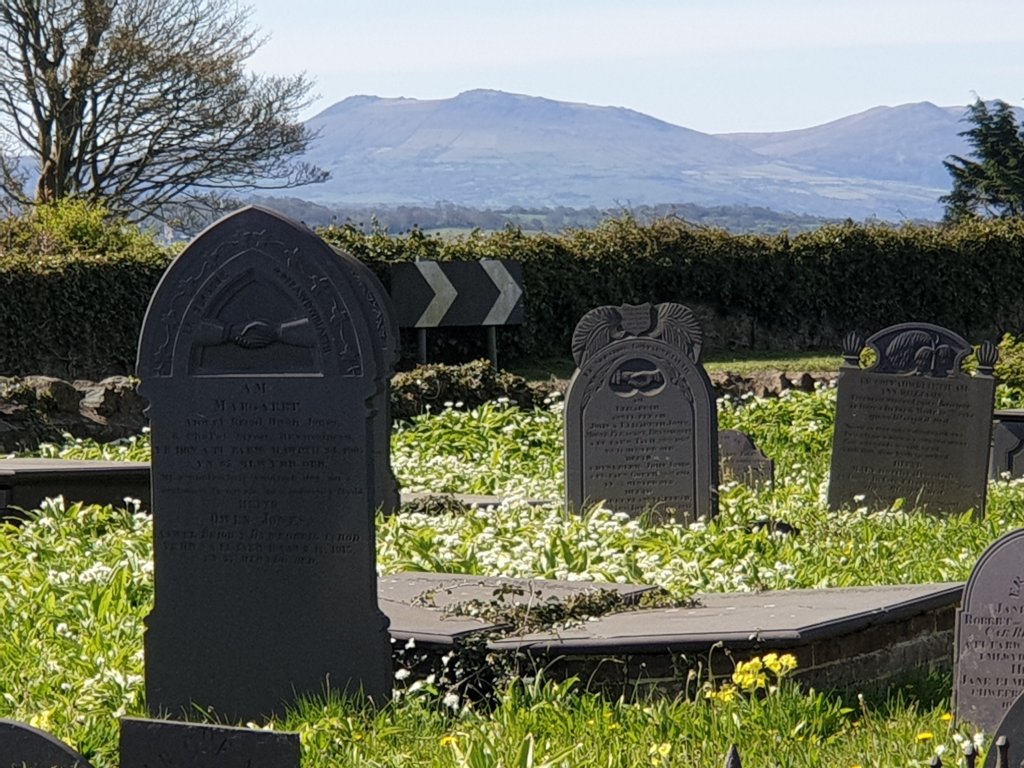 I called in at the new church at Brysiencyn (new because the old church at Llanidan had fallen into a ruin) to admire the wild flowers in the churchyard which can be half glimpsed from the road.