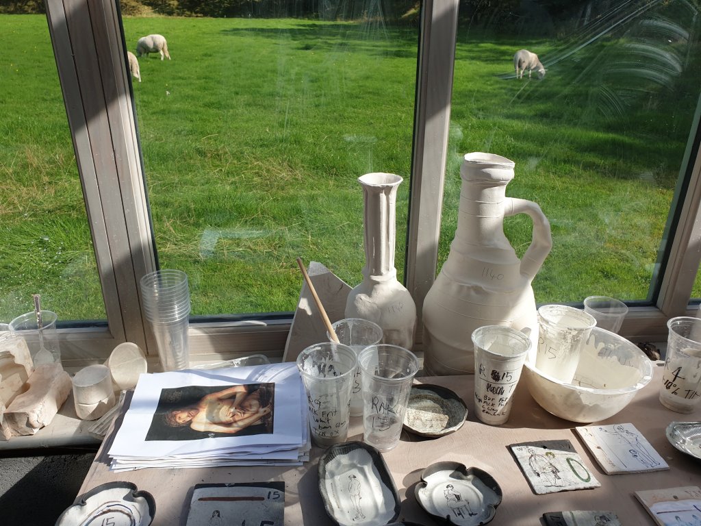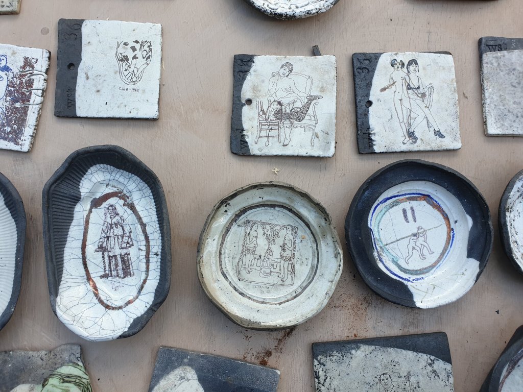 On Monday, I went on a day trip to Neath in South Wales to visit the potter/ceramic artist, Phil Eglin, whose work I have always admired, ever since buying a recumbent figure from the Crafts Council gallery in the V&A, long ago. But I have delayed posting photographs of his work, at his request, until his latest exhibition, Strange Bedfellows, had been launched at the Scottish Gallery (https://scottish-gallery.co.uk/exhibitions/strange-bedfellows).
