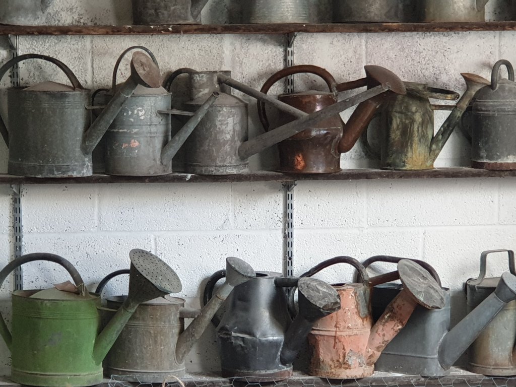 He also has an unrivalled collection of watering cans:-