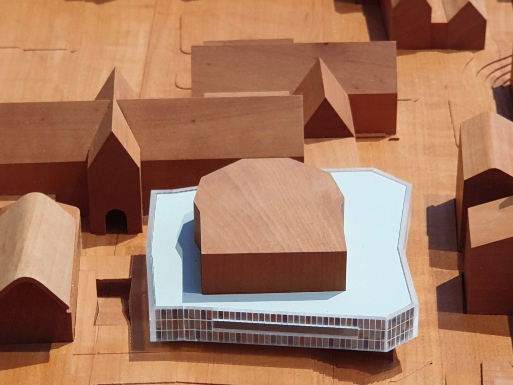 It includes a model of M9, a big building, but low-rise, its bulk to some extent disguised by their characteristic use of multi-coloured tilework:-