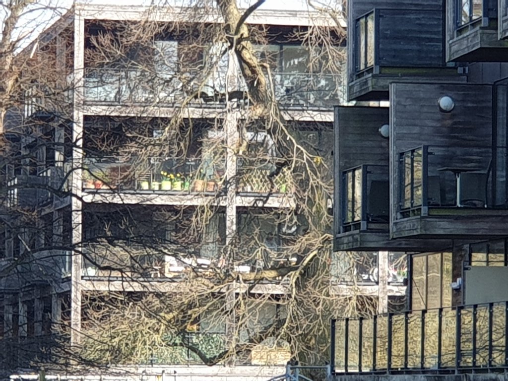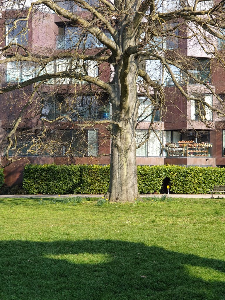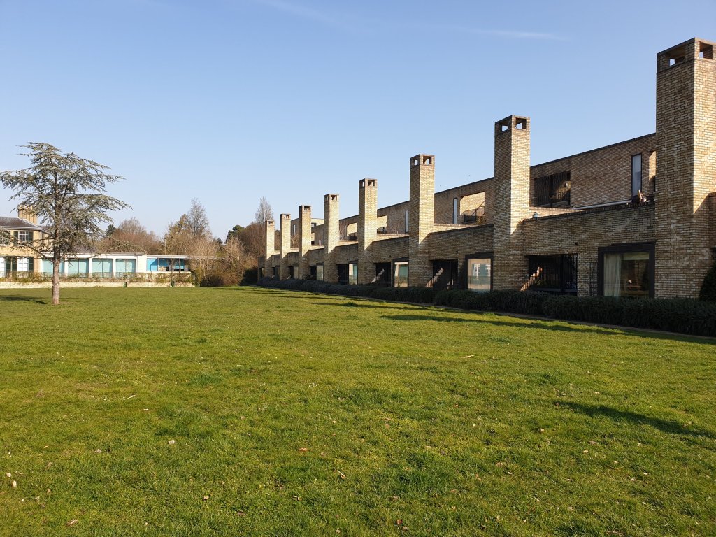 In spite of having been to Cambridge several times since 2008 when the Accordia new housing development won the Stirling Prize, I have never previously made the effort to visit it, although I now realise that it’s within walking distance of the railway station, just south of Brooklands Avenue. It’s pretty impressive – on a big scale, quite varied, keeping existing trees, very slightly eerily quiet, with hundreds of bicycles which people don’t appear to lock up, which says something about their sense of security, and limited access by cars. Actually, quite utopian. It shows that contemporary architects are perfectly capable of producing good quality, well designed housing, providing there is a good site, old trees and lots of money, so it may not be such a good model. Simon Bradley compares it to Dutch models, but this is probably because there is so little good housing in the UK, owing to the dominance of commercial volume builders. Most of it is by Feilden Clegg Bradley, but some also by Alison Brooks, including the Brass Building, to create a sense of variety:-