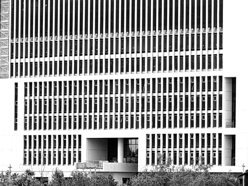This is the new tower block by Skidmore Owings and Merrill, which has two chunks taken out of it, a considerable feat of engineering:-