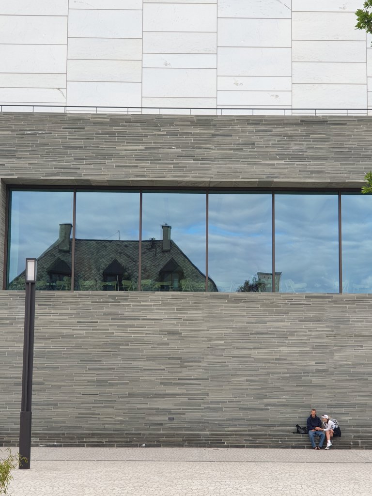 I have been trying to digest the character – and quality – of the new National Museum in Oslo. Its architect, Klaus Schuwerk, is not modest about it. ‘I’ve always wanted to design my own pantheon’, he is deeply interested in the proportions of the rooms, he views himself as working in a tradition going back to Michelangelo and Frank Lloyd Wright, and he has required the museum to issue a disclaimer, making clear everything for which he was not responsible (see below). Actually, by the standards of most museum architects, he has achieved an incredible amount of control over the quality of the materials, the quality of the construction and its detailing, including shallow marble sinks in the Gents and a beautiful long, Neapolitan café, looking out onto the square outside:-