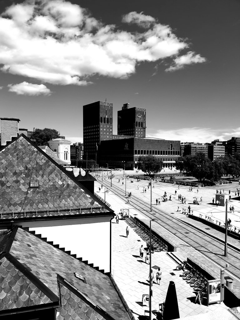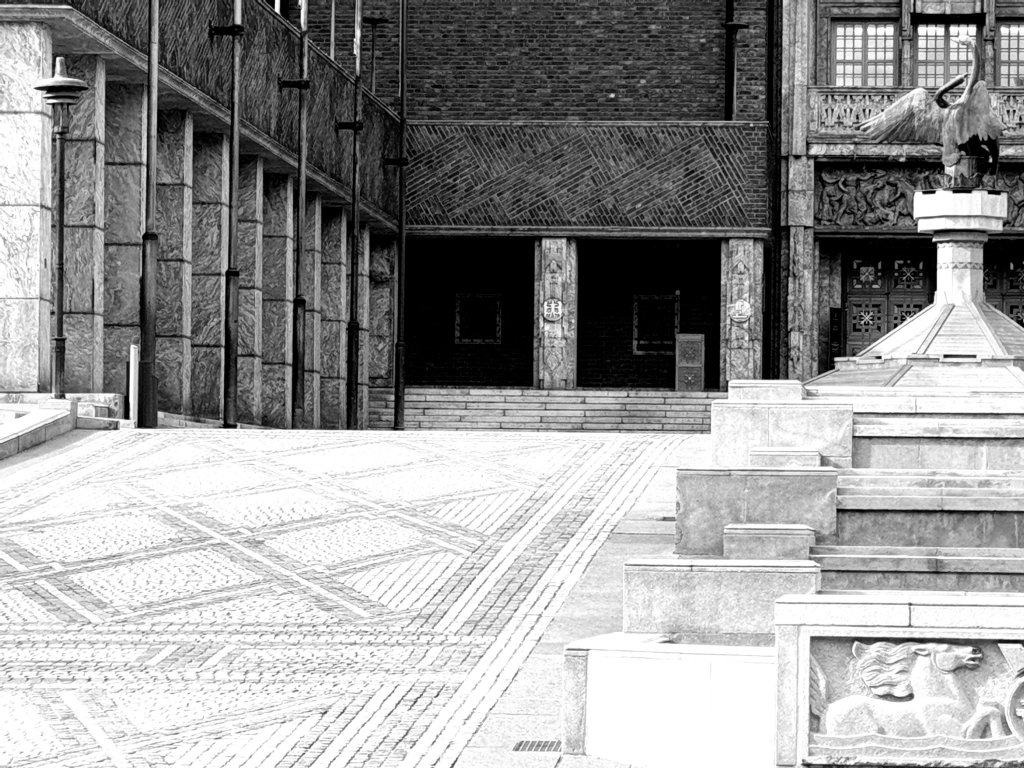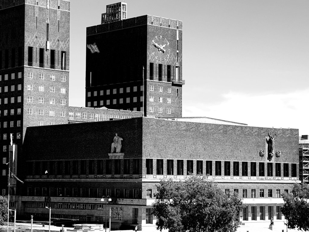 I somehow missed seeing Oslo City Hall last time I was there, although it is very dominant on the harbour edge, a fine example of the Scandinavian abstracted classicism which was so influential in England as an alternative to French and German modernism. The result of a competition held in 1918, it was largely completed by 1936, although not inaugurated till 1950:-