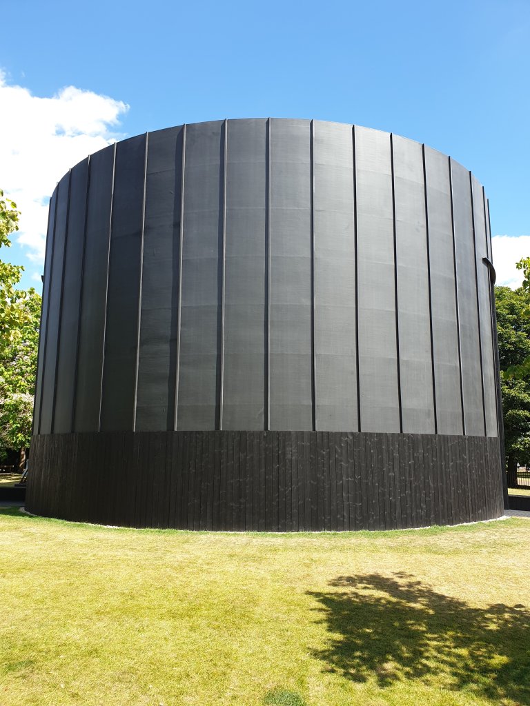 In some way, of course, this imagery has been extensively worked through, not least by Mark Rothko in the Rothko Chapel in Houston and James Turrell in his light installations. I don’t think this invalidates the authority of the black drum – part-funereal and part-meditative. It’s only a bit odd that one can buy a cup of coffee which slightly detracts from the idea that it is sacred space:-