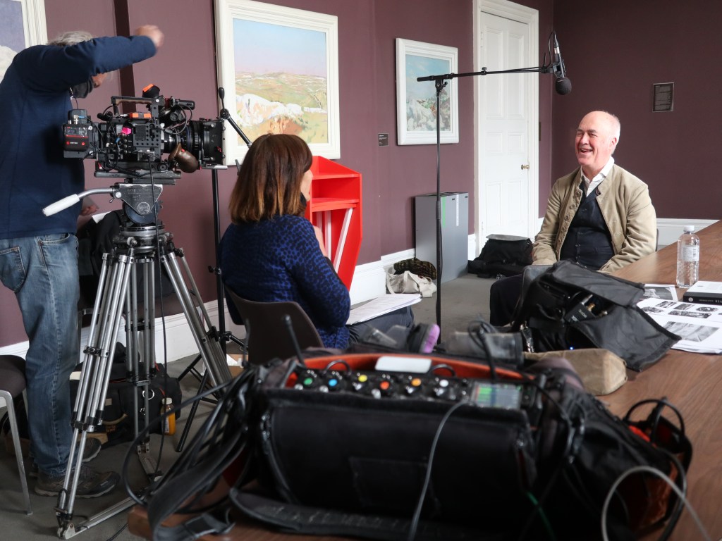 I have been swotting up on Margy Kinmonth’s film about the life of Eric Ravilious, Drawn to War, which is now on general release in cinemas all over the country – and very good it is. I make a fleeting experience, supposedly impersonating Kenneth Clark who was responsible for Ravilious’s appointment as a war artist. Here is a picture of the filming in the Imperial War Museum on 13 April 2021. It seems like another era, much more than just over a year ago:-