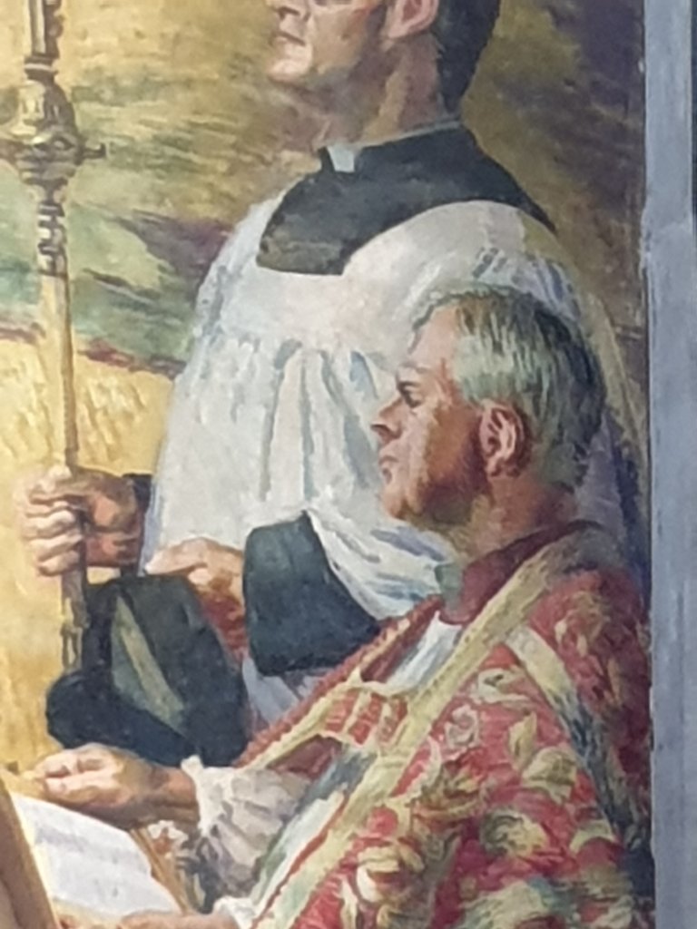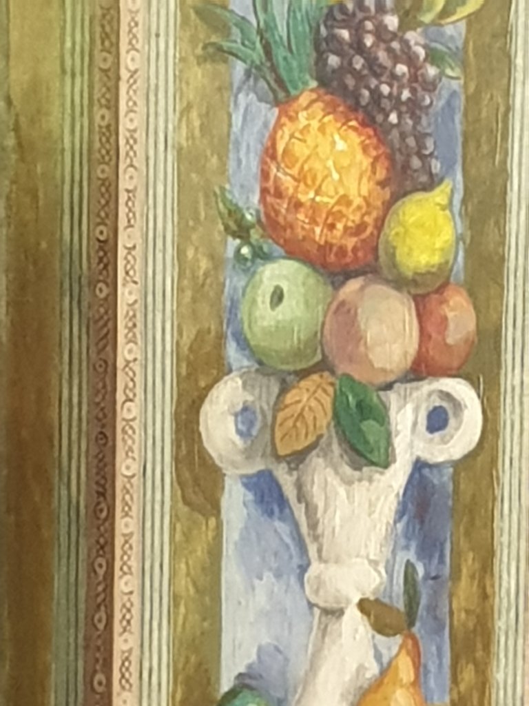Berwick Church is in course of restoration, with help from the HLF. It preserves the mural decoration done by Vanessa and Quentin Bell with Duncan Grant better than I had remembered: a mixture of Omega style decoration round the pulpit with their memories of Tuscan wall decoration in the aisles and the entrance to the chancel:-