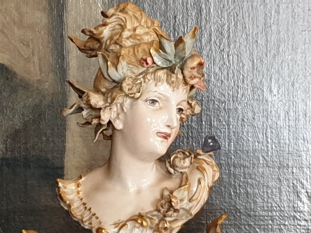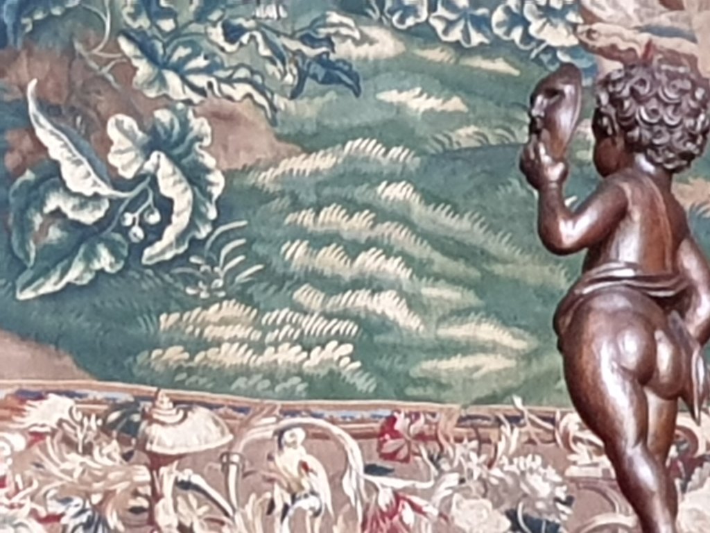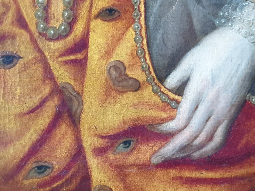 I will start with the Rainbow portrait in the Marble Hall, partly because I have been reading about Roy Strong’s first encounter with portraits of the Queen, the subject of his first book (1963):-