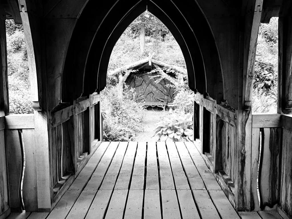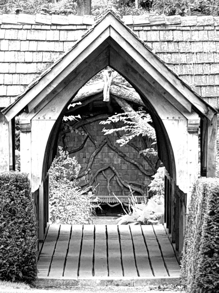 The Rothesay Garden, an Anglo-Chinoiserie ornamental garden with an impressive carpentry bridge, as if from an eighteenth-century pattern book, but done with freedom:-