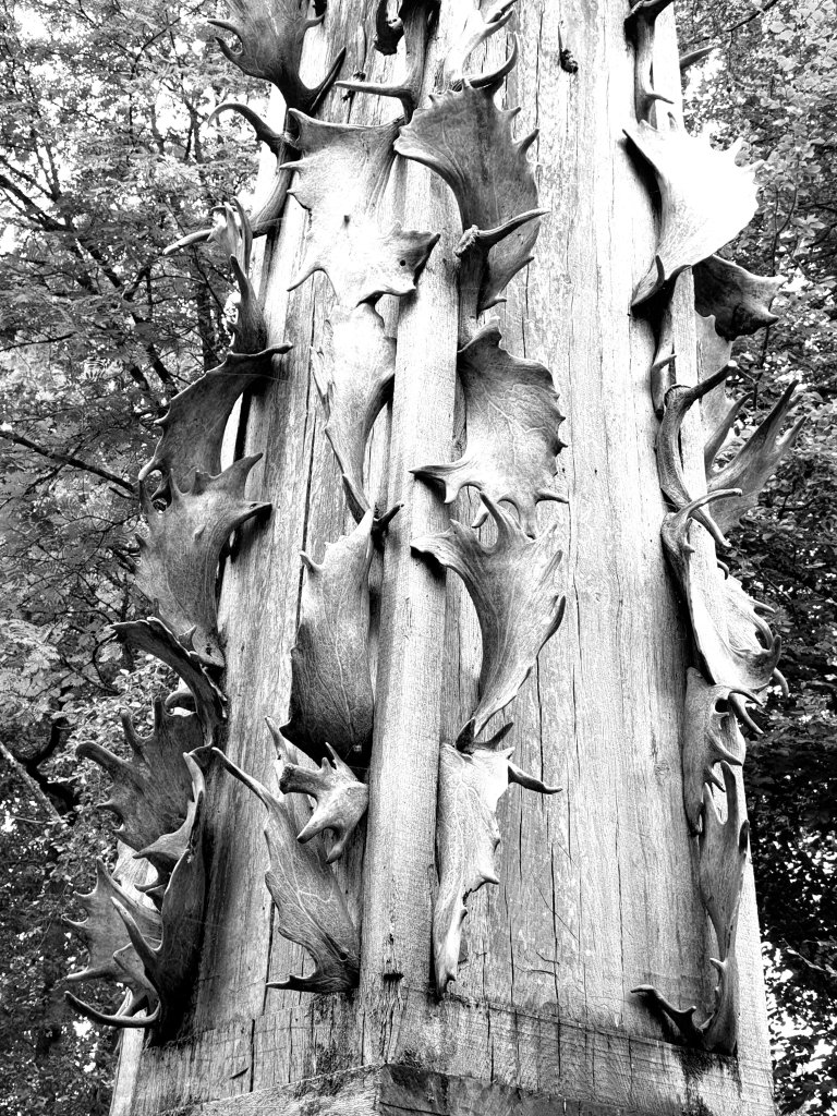 A column ornamented with antlers, again a free interpretation of pattern-book design:-