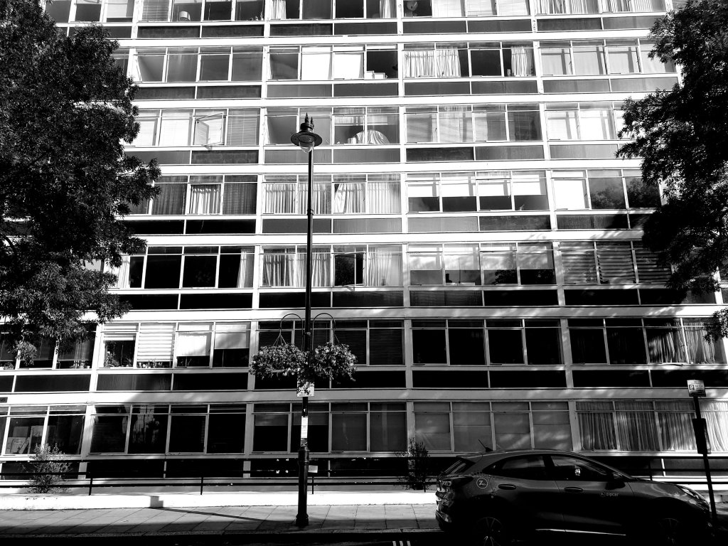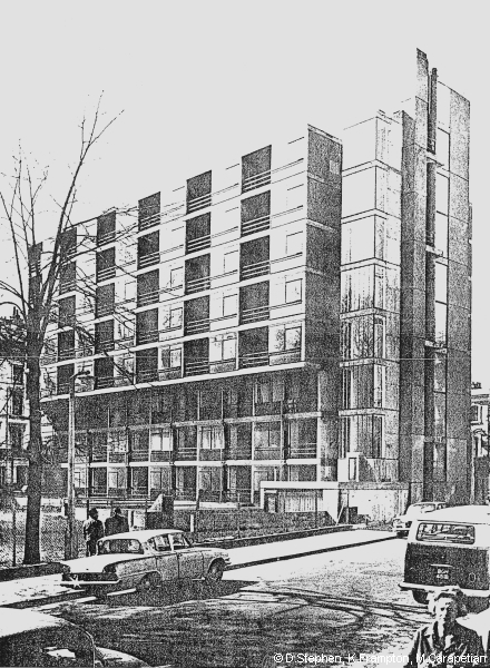 I have been meaning to have a look at this somewhat nondescript block of flats known as The Corringham at the top of Craven Hill not exactly for its architectural quality, but because it is one of the small number of recorded works by the architectural historian, Kenneth Frampton, designed 1960 to 1962, completed in 1964 when he was working for Douglas Stephen, a somewhat mysterious architect, not in the DNB, who had established his architectural practice in 1954 and later employed Carl Laubin:-