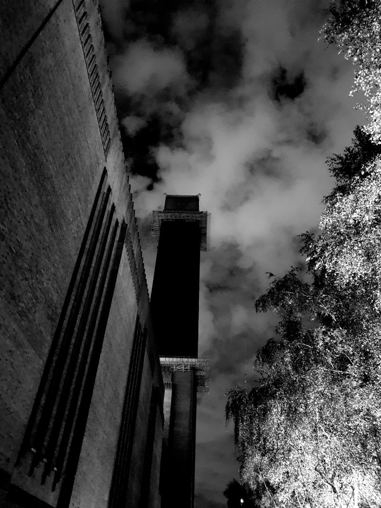 I walked round from the back of Tate Modern this evening and was confronted by the smoke stack. I remember David Chipperfield wanted to take it down, but it’s impressive:-