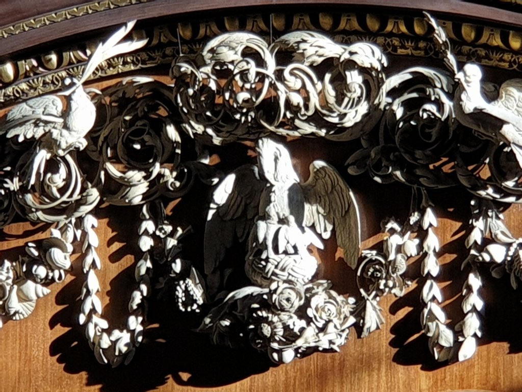 Before the service, the sun shone on the Grinling Gibbons reredos of the Pelican Feeding its Young:-