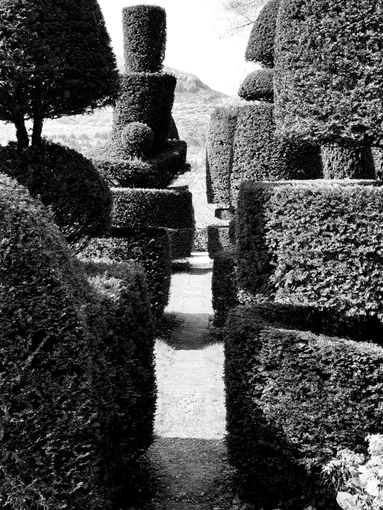We haven’t been to Plas Brondanw in a long while – Clough Williams Ellis’s seventeenth–century house on a steep hillside looking across the Porthmadog valley to the mountains, a spectacularly picturesque setting which he enhanced with an elaborate Italianate layout and planting begun before the First World War.