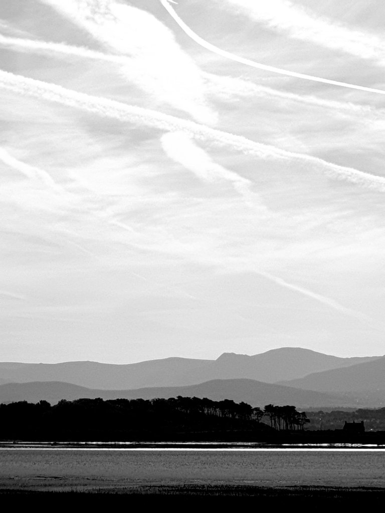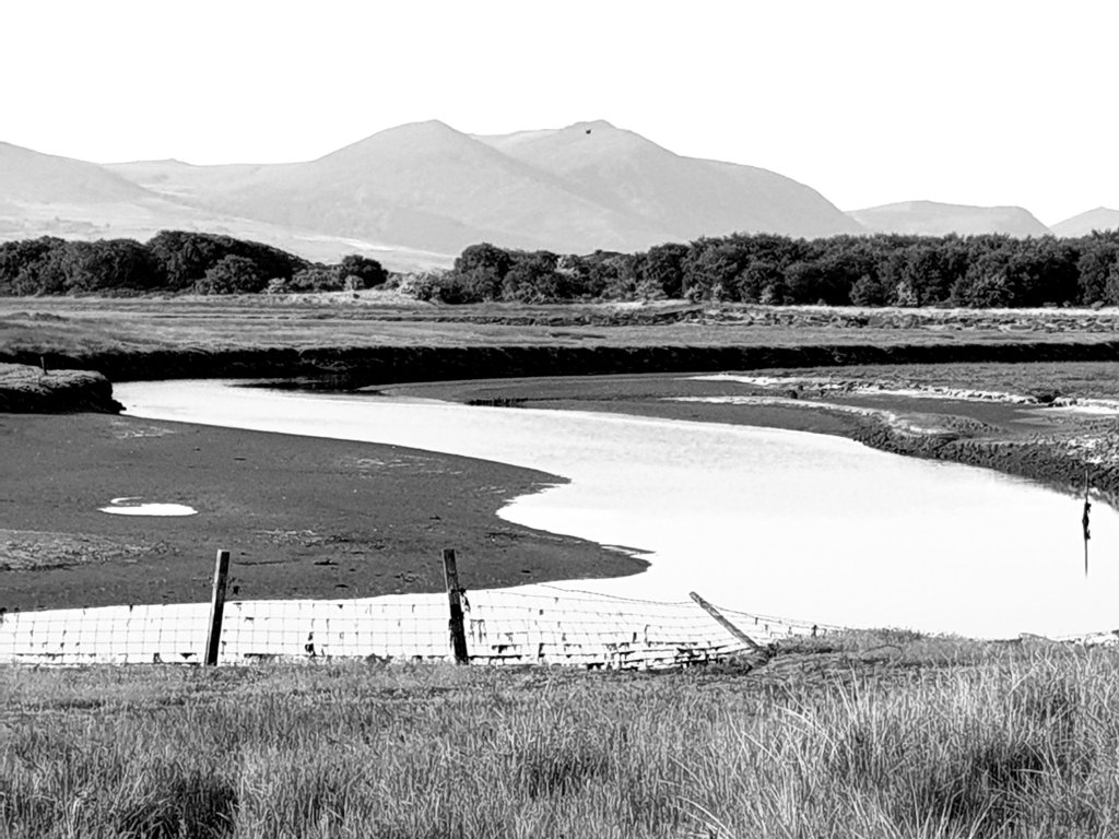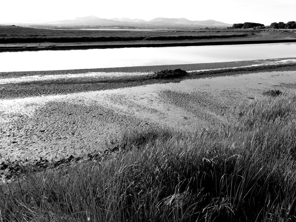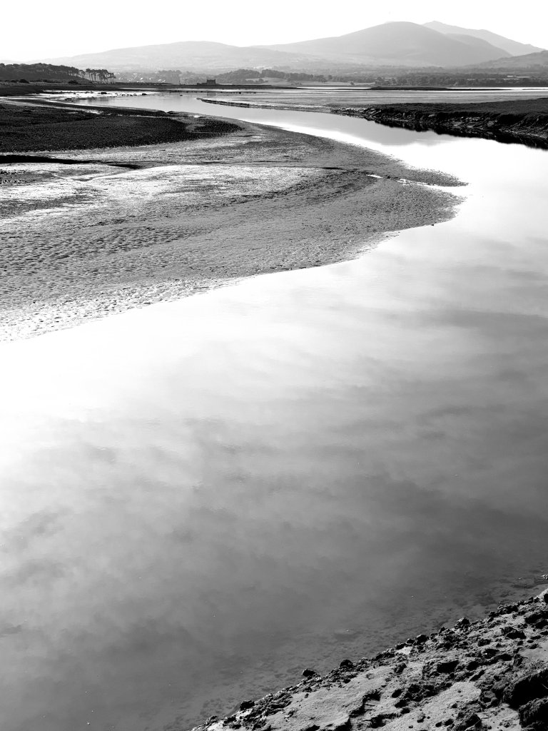 I walked down the side of the river this morning to the broad and unpopulated expanse of the estuary looking across to the mountains beyond:-