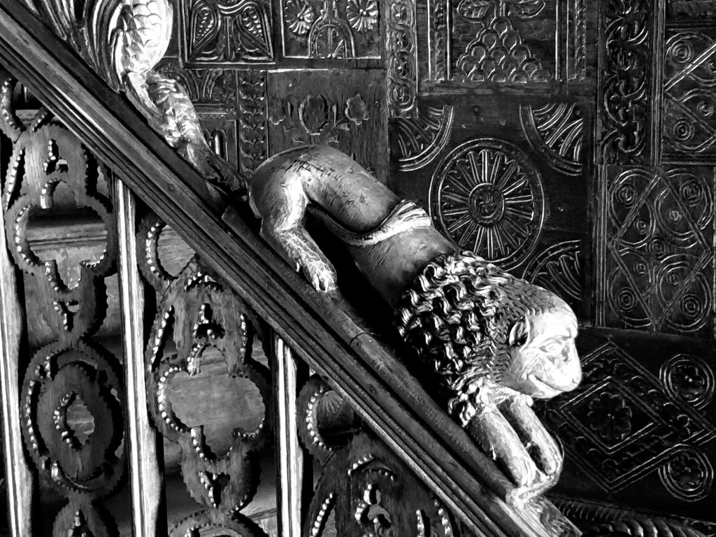 They were mad about Jacobean wood carving and seem to have festooned the house with wood carving, some of which was original, some commissioned by them, and some donated, but curiously apparently not very well documented (although I confess never to have read their biography by Elizabeth Mavor, still in print):-