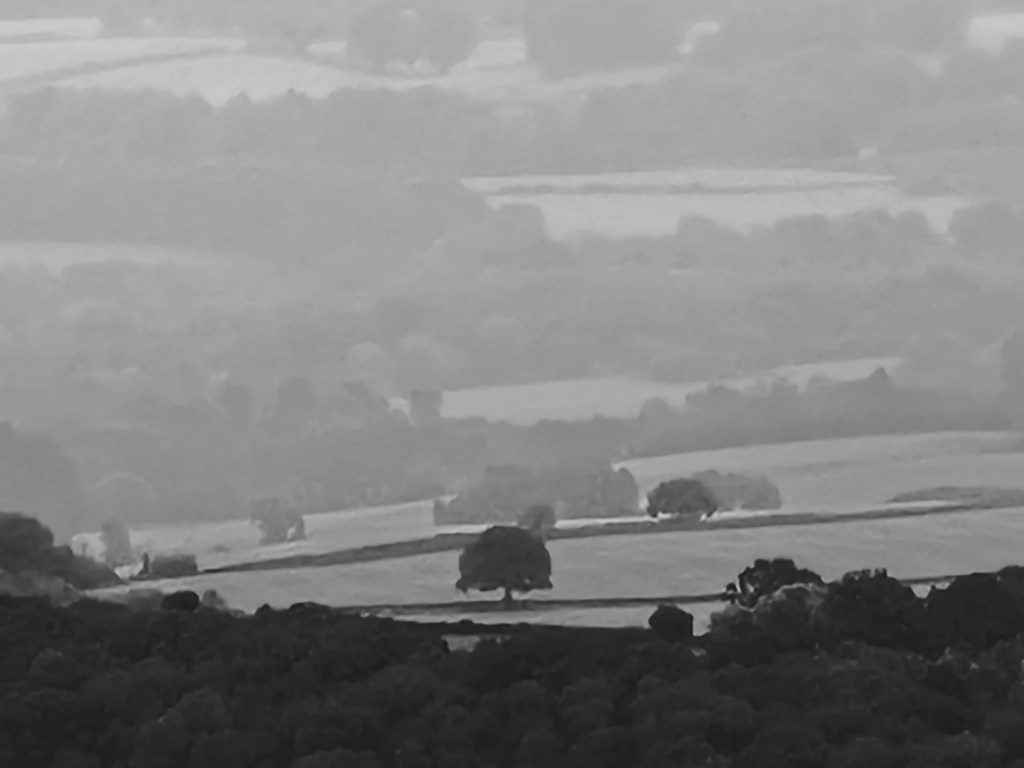 I stopped on Clee Hill to look southwards towards the Malvern Hills because of the light on the distant fields:-