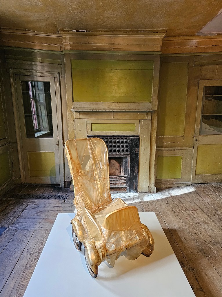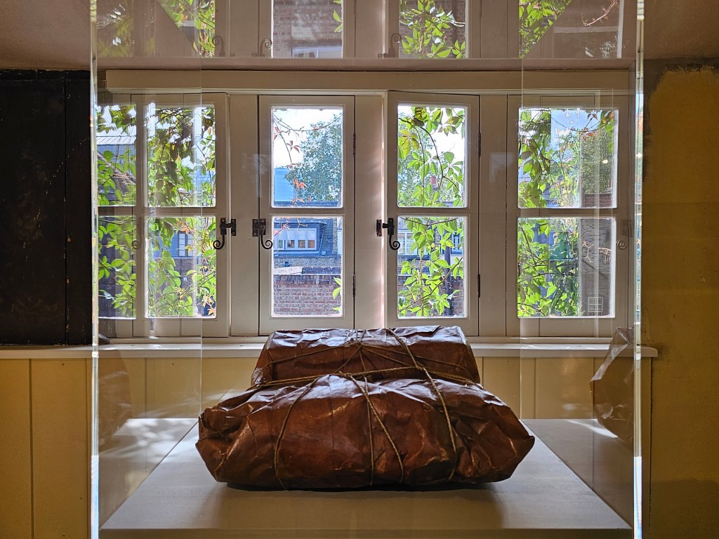 For anyone who is in London for Frieze week or anyone looking for something to do this weekend, I strongly recommend a visit to the exhibition of the work of Christo which Gagosian have installed in 4, Princelet Street in the heart of Spitalfields – originally 2, Princes Street, built by Samuel Worrall and leased to a glover for £756 pa in 1724. It is not just that smaller work by Christo looks very good in the space, but the space itself is remarkable in being completely unrestored.