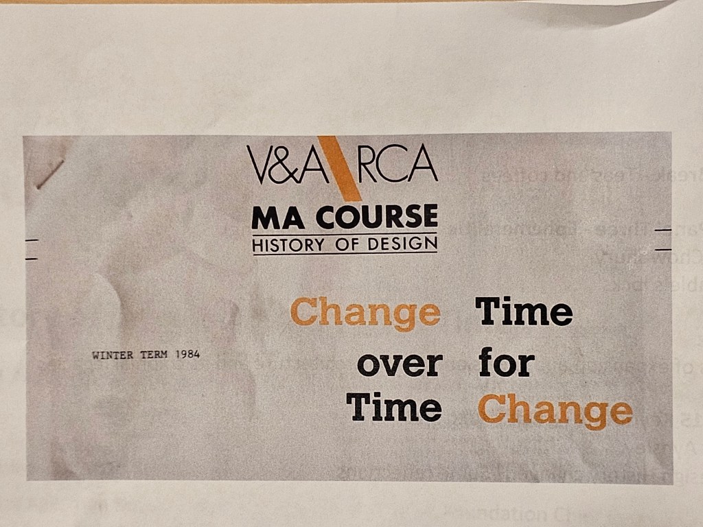 Today was the first day of a two-day conference to mark/celebrate/explore the changes in the writing and study of the history of design since the establishment of the V&A/RCA MA Course in the History of Design in October 1982. The conference is called History of Design: Change over Time/Time for Change.