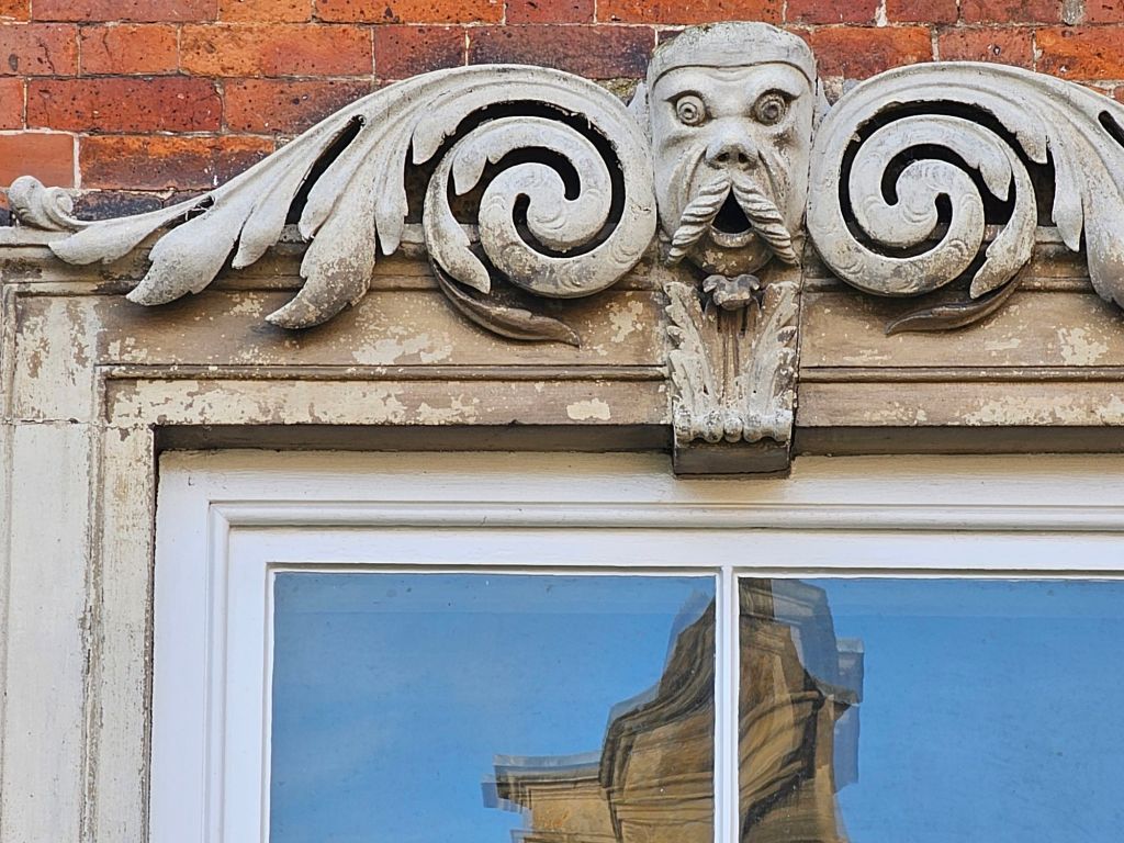 Poshed up in the 1680s by Henry Bell, a mason-contractor from King’s Lynn who added fine window heads and drain pipes in the courtyard:-