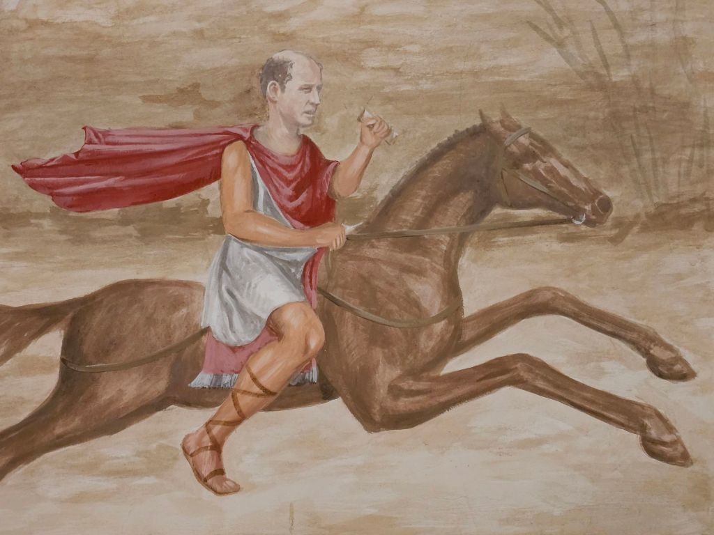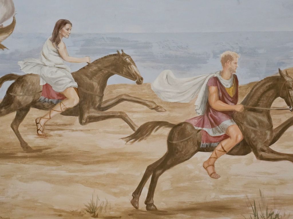 The fresco of the Roman emperor is based on the Prince of Wales:-