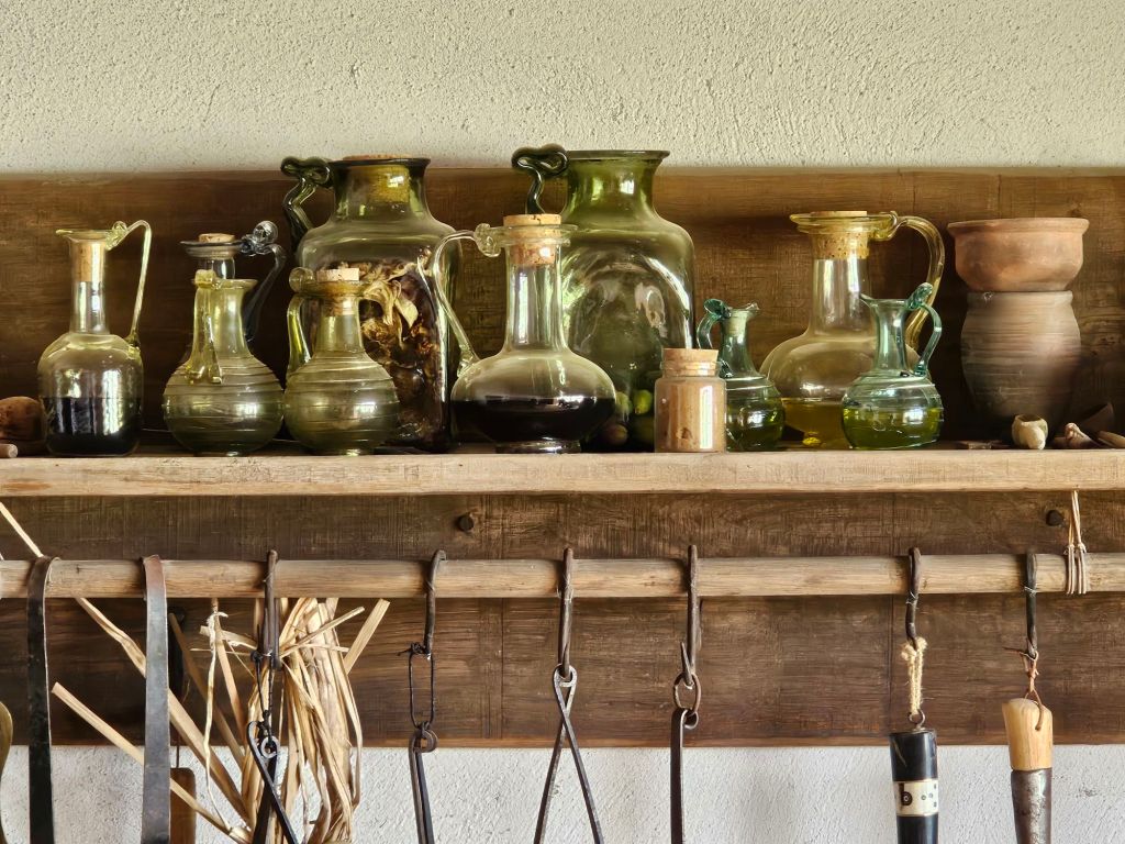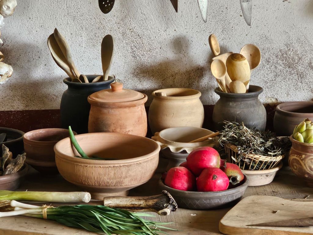 The kitchen is strangely modern because so many kitchen implements are based on antique prototypes (I don’t doubt the care which has gone into the reconstruction):-
