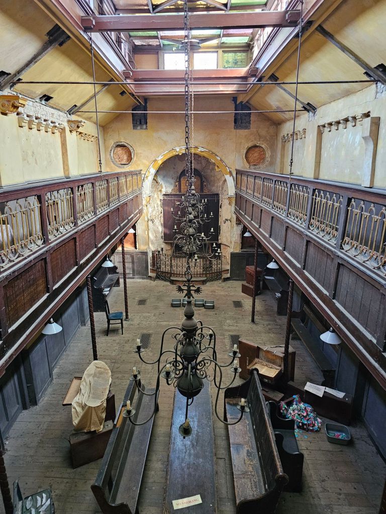 I have never previously been into 19, Princelet Street, a house which was built by Samuel Worrall, a builder entrepreneur, in 1718, for Peter Abraham Ogier, a Huguenot silk merchant. In 1869, the ground floor was turned into a synagogue which was abandoned after the Second World War. The house and its contents were acquired by the Spitalfields Trust in 1981 and for a time efforts were made to turn it into a Museum of Immigration and Diversity. This seems to have failed and the lease has been reacquired by the Spitalfields Trust.