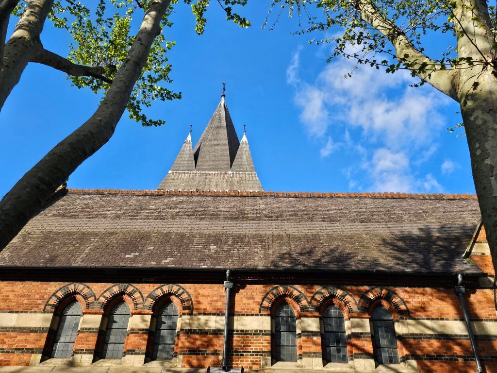 I always like visiting St. James-the-Less in Pimlico, such a great Victorian church, not least for its surrounding Darbourne and Darke estate which enhances the sense of surprise at its polychromatic brick exterior:-