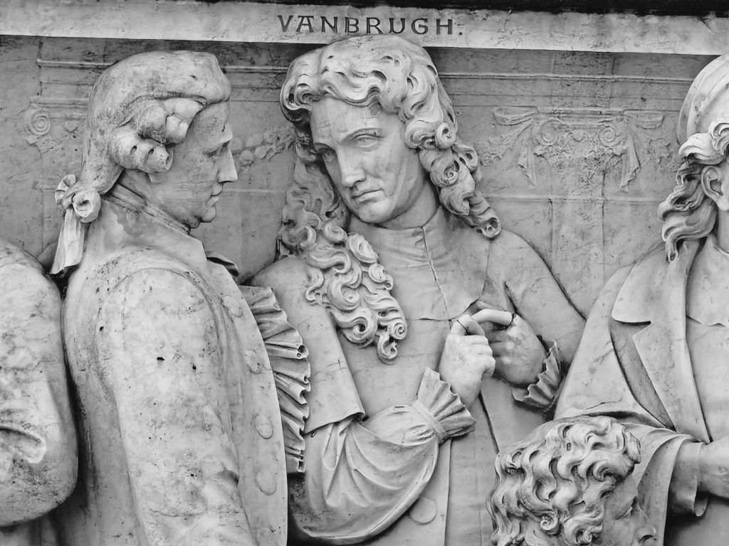 I stopped off on my way through Hyde Park to check out Vanbrugh on the Albert Memorial. He’s on the north side, so in shadow, sandwiched between William Chambers and Christopher Wren. He didn’t make it on to the façade of either the Royal Academy, when Sidney Smirke added the top storey or of the V&A, so I am interested as to who chose the architects for the Albert Memorial. Presumably, Scott himself had a say because he included himself alone among living sitters. Only one woman and she was Egyptian.