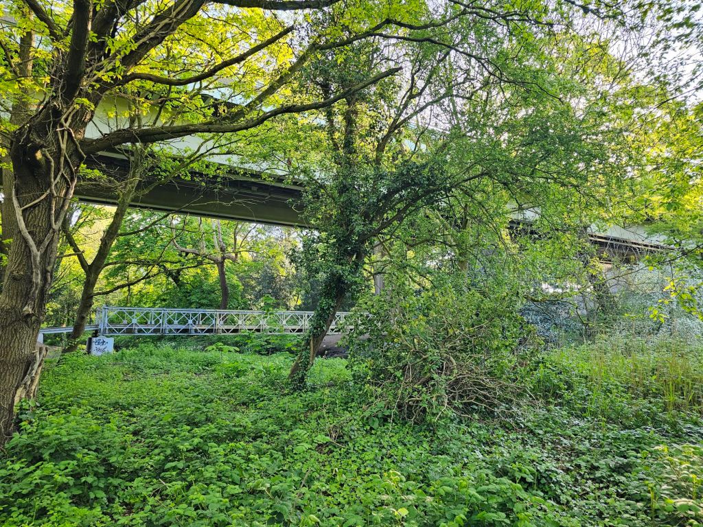 For reasons too complicated to explain, we now get our car serviced in Brentford, which entailed an early morning drive out west and then a walk to Boston Manor underground station through a curious and unexpected piece of woodland directly under the Chiswick Flyover. A bit of urban pastoral:-