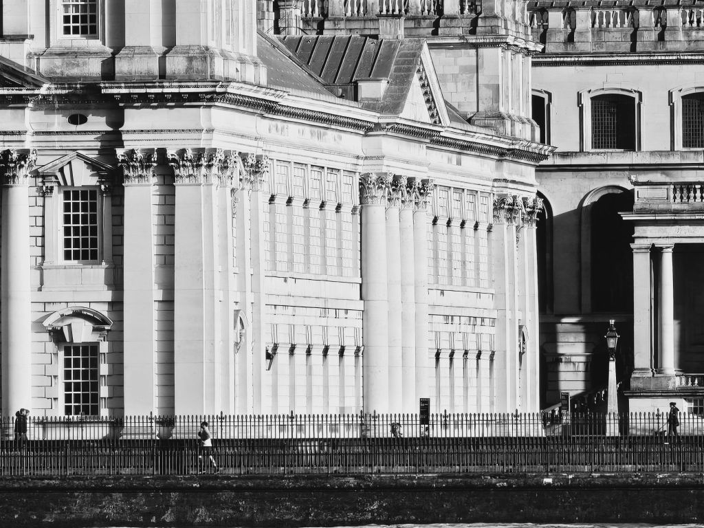 I realised that the composition of the blocks by the river, including the King Charles block by John Webb, is odd because the façade facing the river is so much more elaborate – if you like, more baroque – than the two long and more Palladian façades facing one another across the great courtyard.