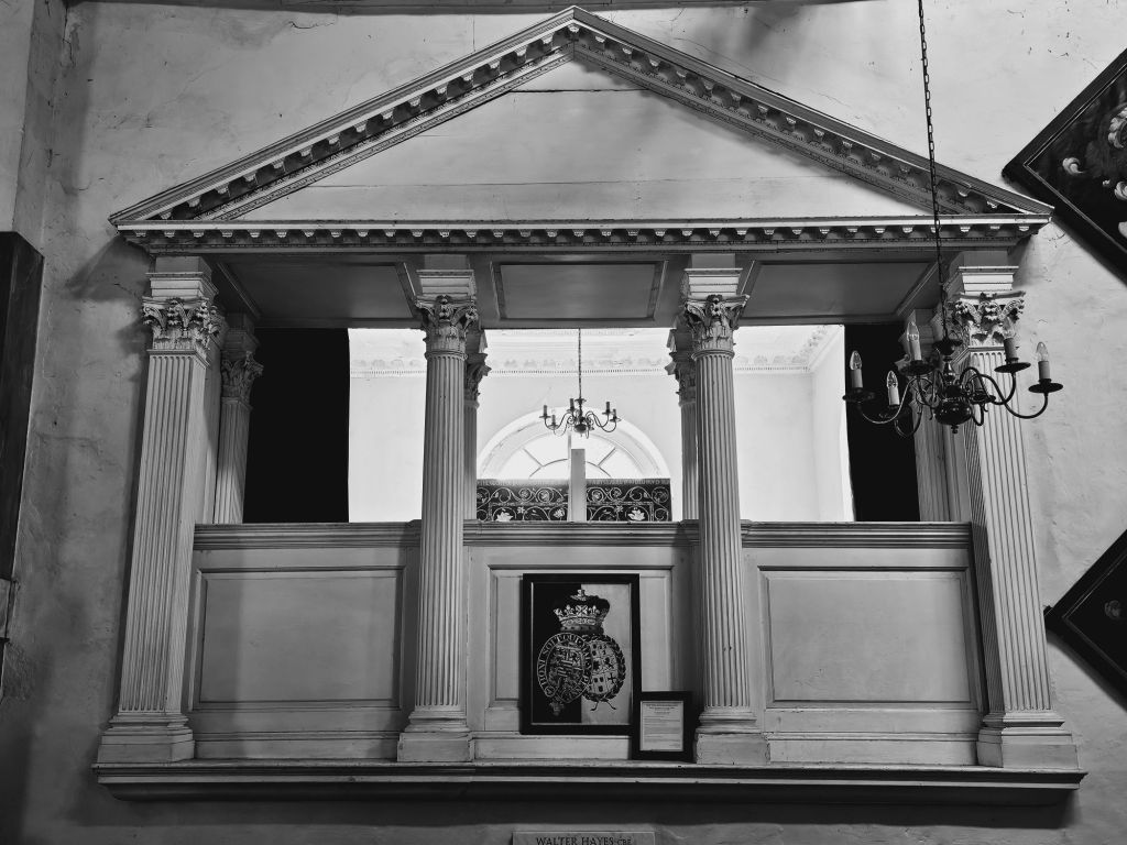 En route to Claremont, I stopped at St. George’s, Esher, the small, curiously rustic, old village church, where Thomas Pelham-Holles apparently asked Vanbrugh to install a family pew – not just any old pew, but a private side chapel from which the Duke would have found it hard to see anything except the Vicar in his fine double-decker pulpit.  You might have thought that he could have afforded to build a new church.