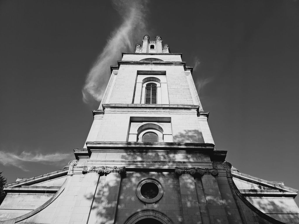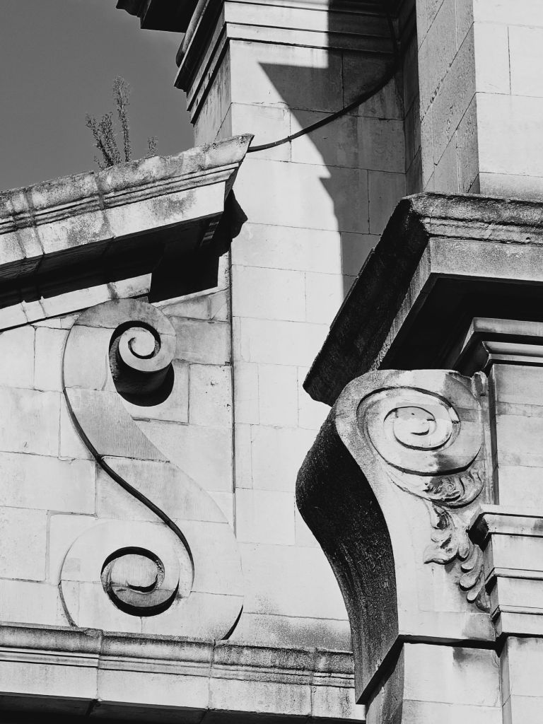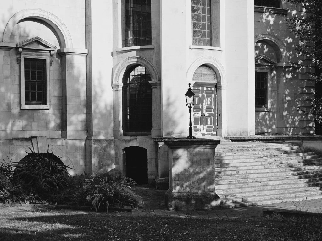 Inspired by St. Anne’s, Limehouse, I went also to St. George-in-the-East, similar to St. Anne’s, but slightly less muscular, more elaborate in its detailing, not at all like Vanbrugh:-