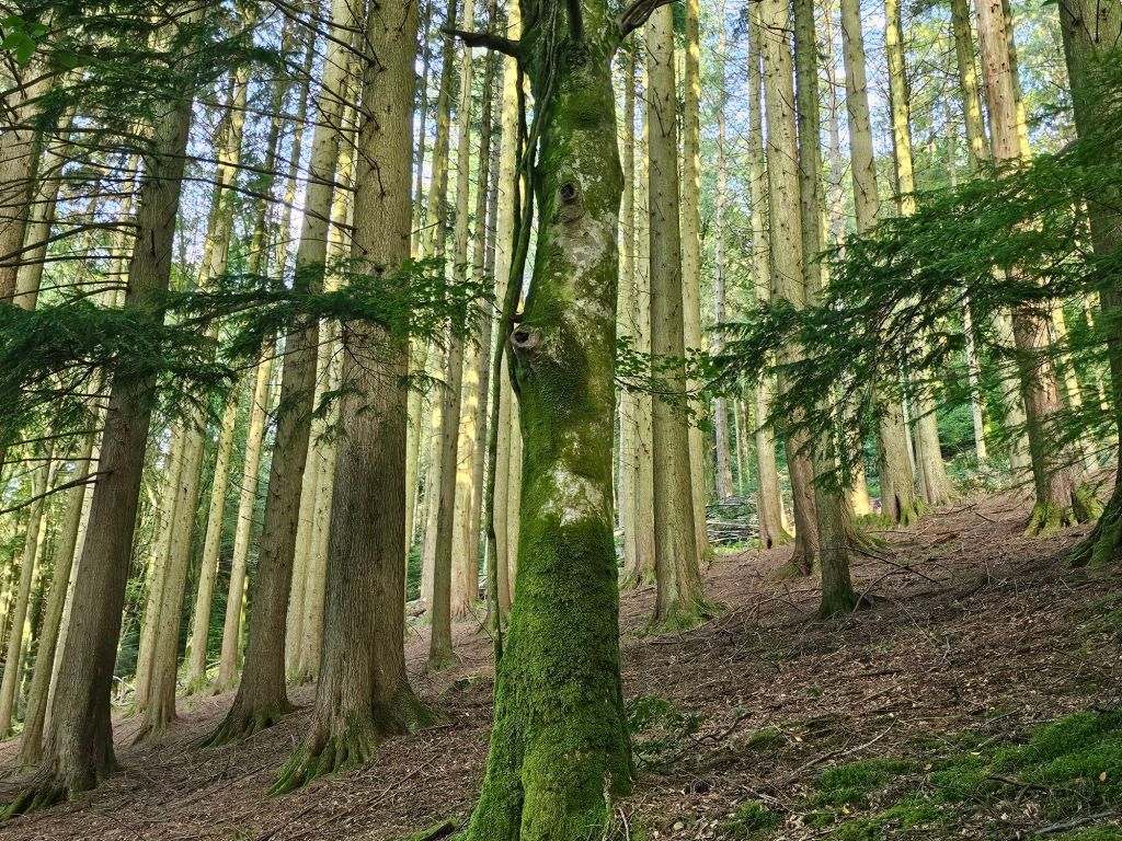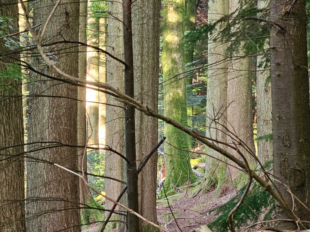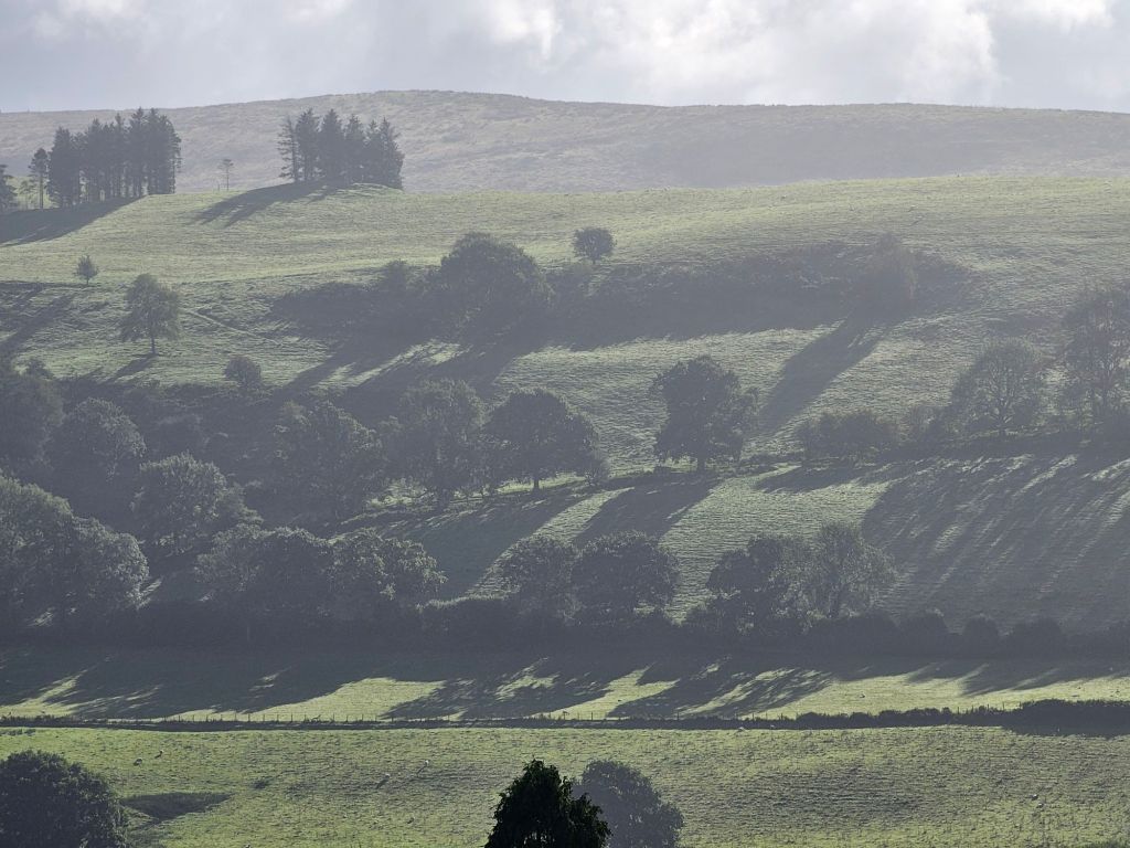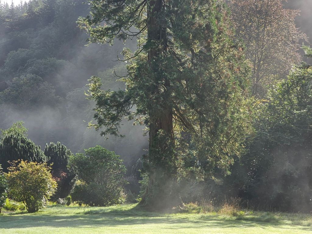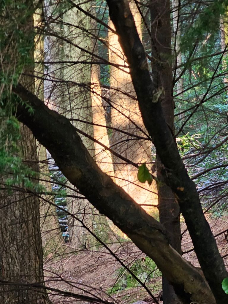 It’s very misty in west Wales, but last night the late evening sun lit up the woods:-
