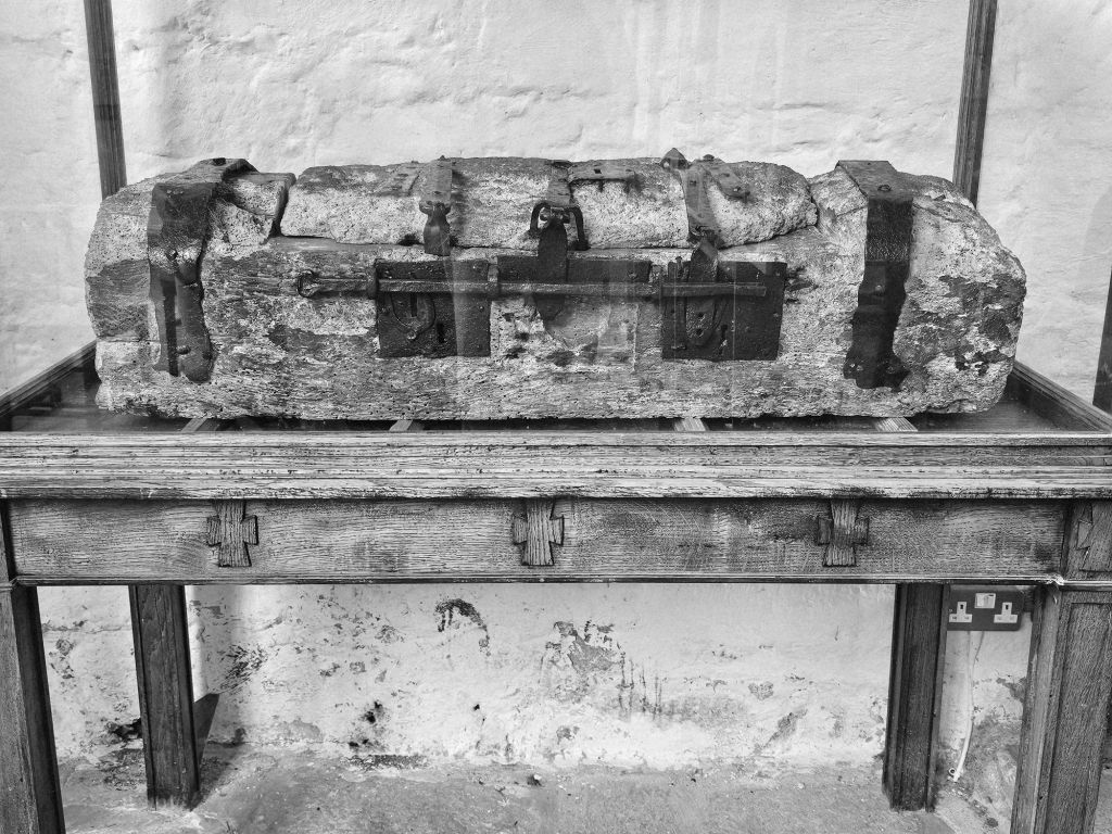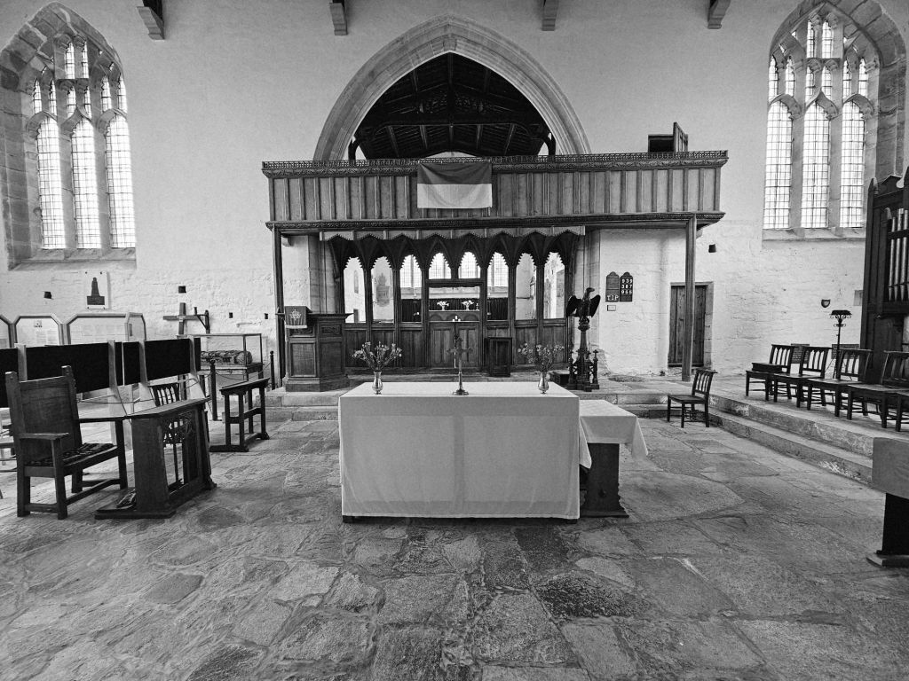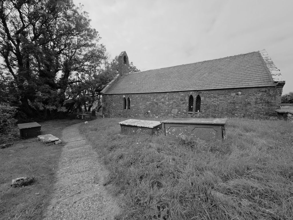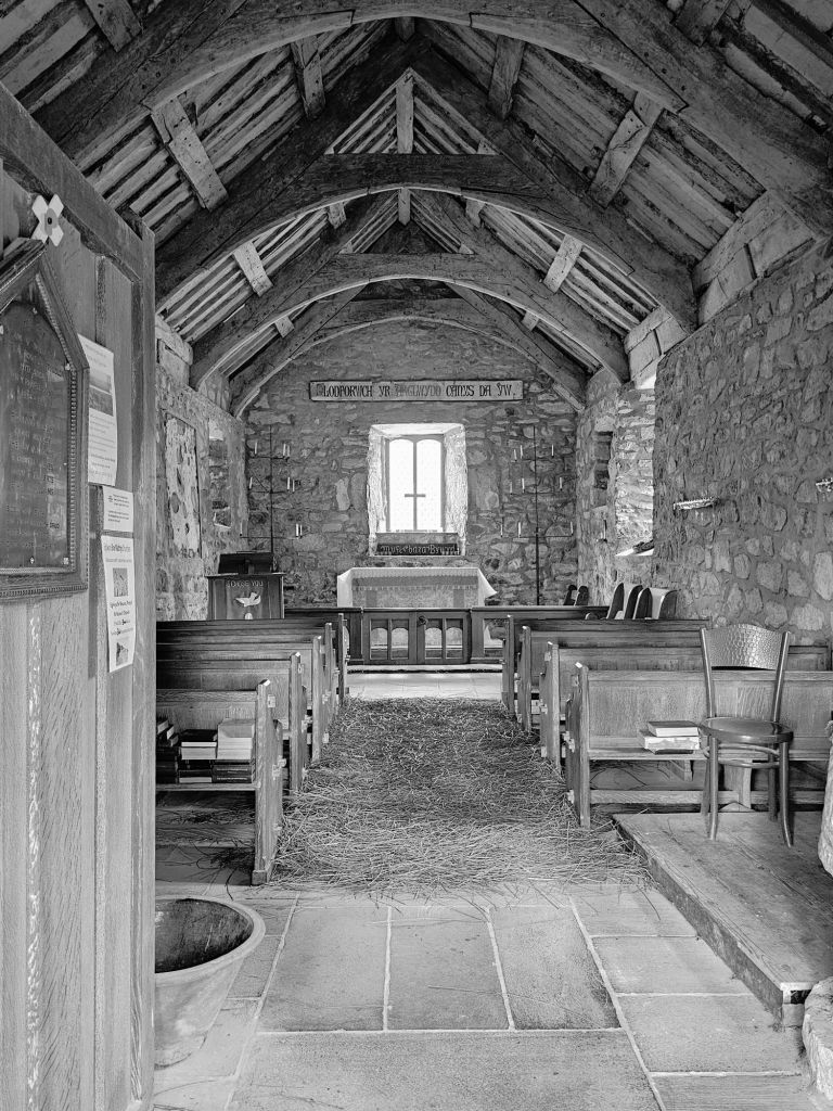 We tried to visit St. Curch in Carnguwch, but couldn’t figure out how to get to it across fields. After lunch in Morfa Nefyn, we ended up in St. Beuno, Pistyll, in a beautiful setting on the side of a hill and with straw on the floor, giving it a monastic feel:-
