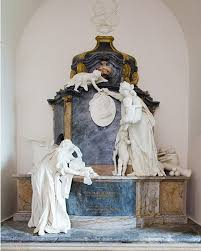 The Duchess died two years later in 1751. Her daughter, Mary, then commissioned Roubiliac to design a companion monument, equally fine, with the three fates, Clotho, Atropos and Lachesis, mourning her loss:-
