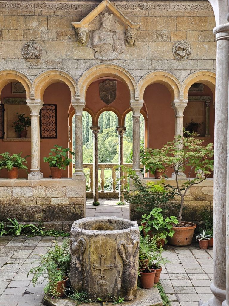 Harold Peto moved to Iford Manor in 1899. having visited it with H. Avray Tipping, the architectural writer (and a pioneer in writing about Vanbrugh). The house is in a beautiful location, in a steep valley, but looking out across fields. He added Italianate terraces, and sculpture which he had presumably acquired in Italy or from the flourishing market for Italian objets d’art:-