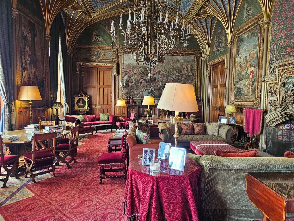 Inside is extraordinary and unexpected, much less austere than Smirke intended. The second Earl Somers commissioned Pugin to do up the drawing room, which he did as if it was the House of Lords:-