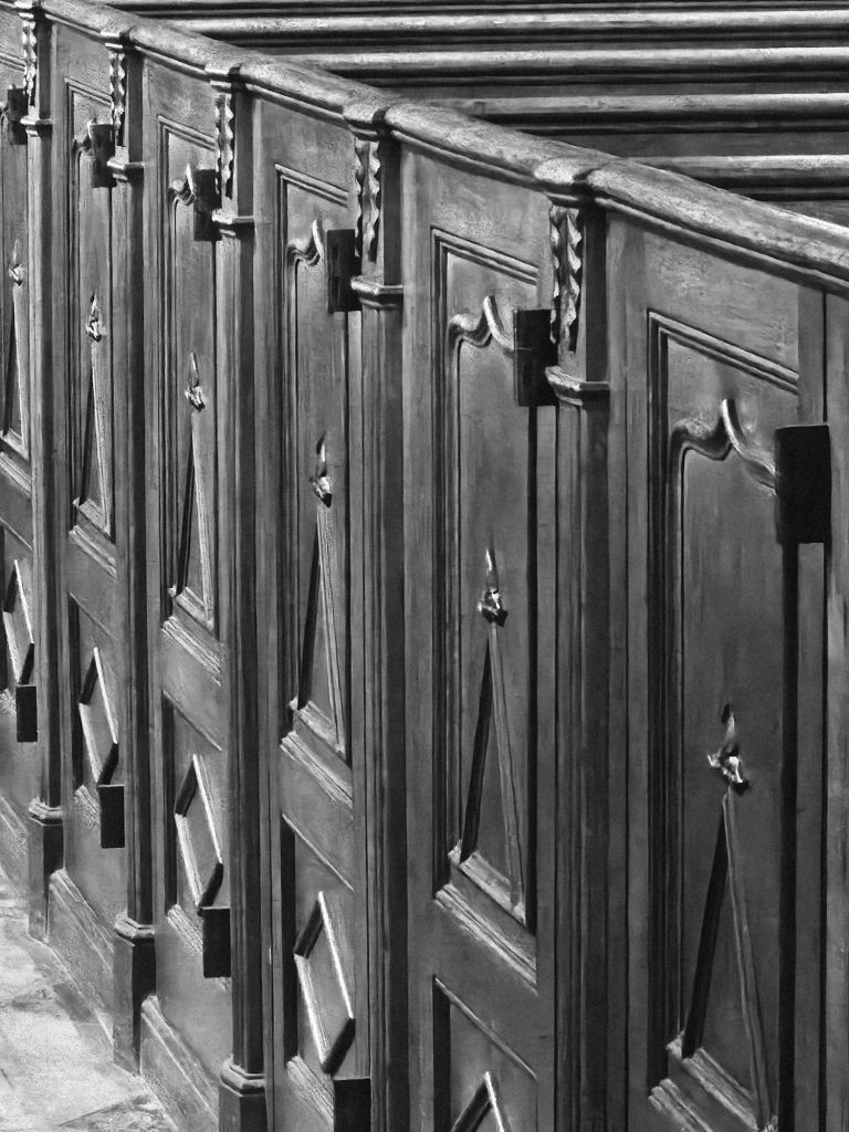 It’s a long time since I’ve been to Mildenhall Church, down a lane in the Kennet valley – so beautifully preserved with its Gothick or early Gothic revival pews and twin pulpit, half way between Batty Langley and Pugin.