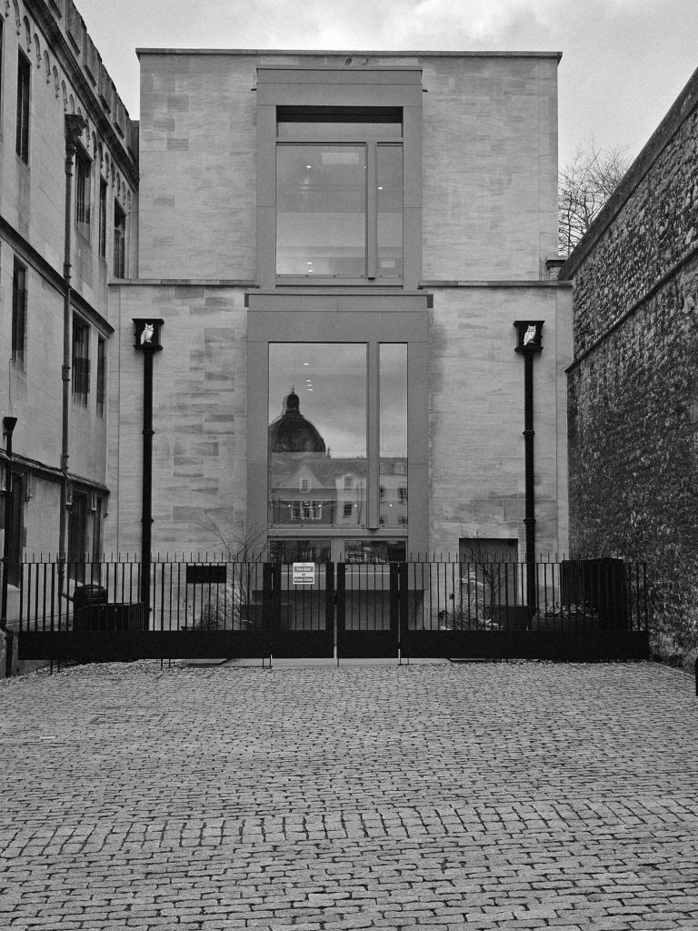 It has been fitted into a small space alongside the existing 16th. Century Old Library and the boundary with Christ Church, not an easy task, but compensating by a generosity of outlook and big windows as seen from the street.
