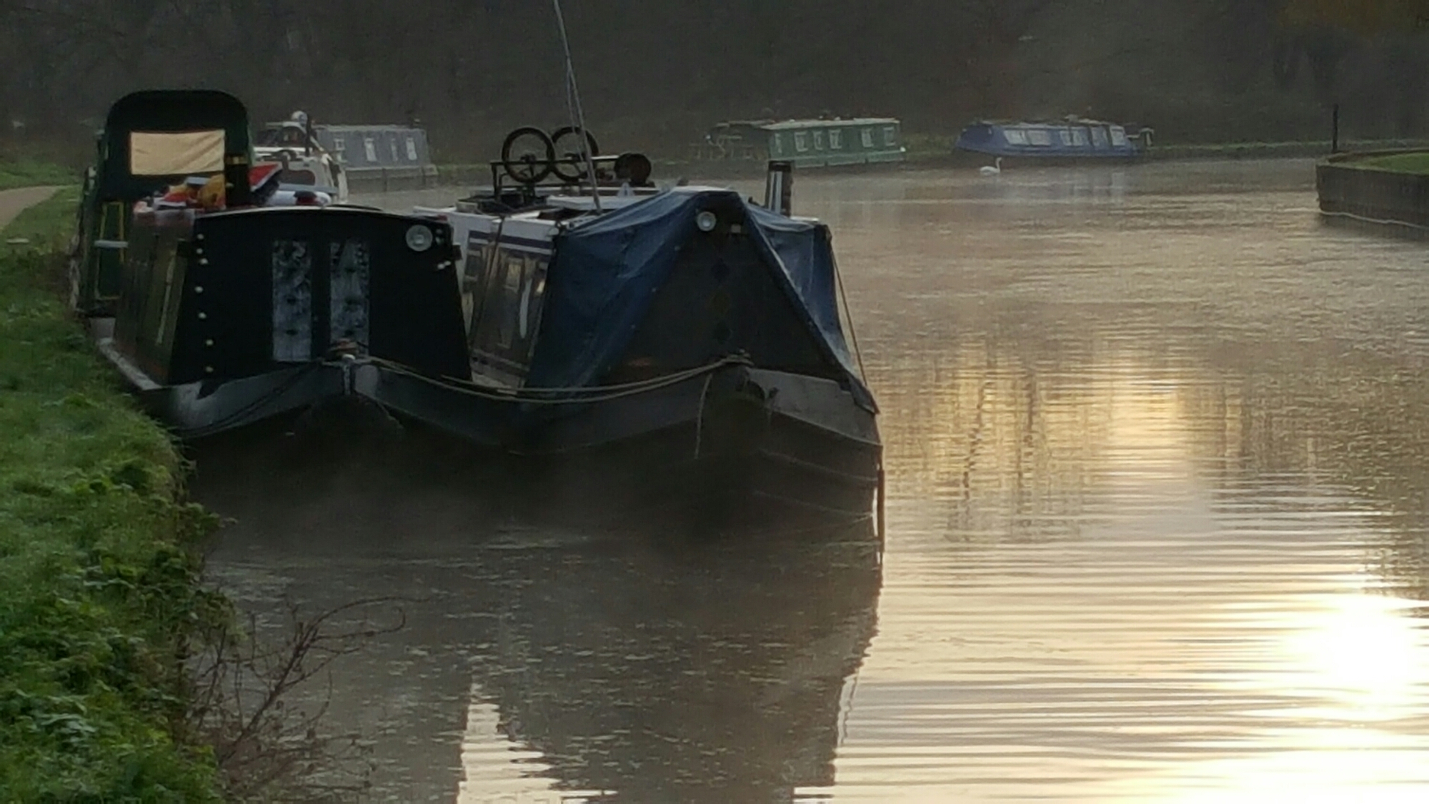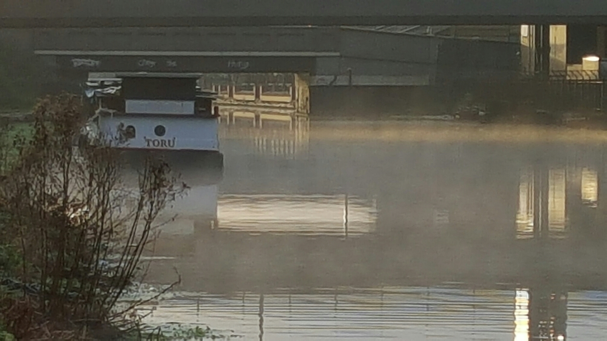 Having had a rather sedentary Christmas, I decided to get out early on New Year’s Day. I walked eastwards along the Hertford Union Canal not quite sure which direction to go and then headed northwards up the River Lea beyond the Olympic Park to where the landscape resumes its character of industrial wastelands. There were not many people about, only the woodsmoke from the canal boats, the occasional swan, debris in the pubs, and a lone sculler. I went as far as Tottenham Hale. Next time I must go to Broxbourne:-
